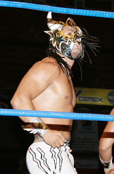 エクトール・ガルサ&ラ・マスカラと組んでのCMLLトリオと合わせ二冠王になりました。